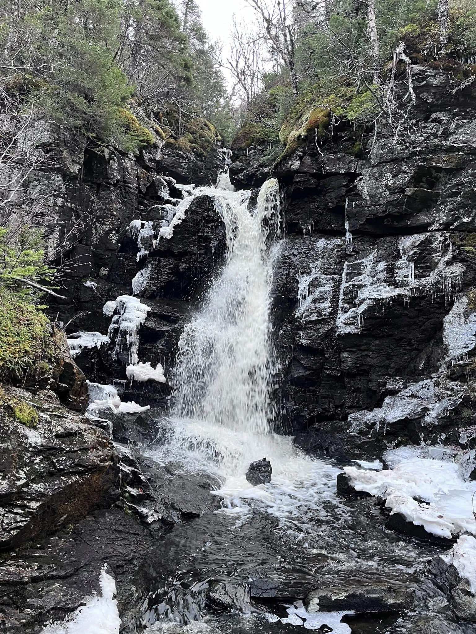 Triple Falls Trail is a short but rewarding walk that leads to a hidden gem on Newfoundland’s Great Northern Peninsula. Following a well-trodden, though unmaintained, path through the forest, hikers are soon greeted by the soothing sound of rushing water. The trail ends at Triple Falls — a picturesque local swimming hole where cascading water tumbles into a natural pool.